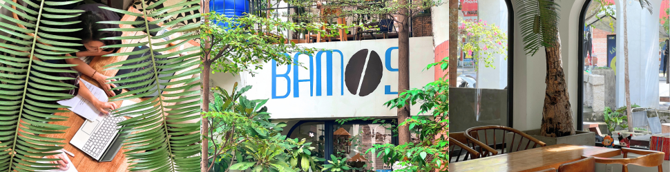 Với phong cách Địa Trung Hải hòa cùng một ít nét văn hóa Việt Nam khiến cảnh quan của Bamos Coffee trở nên đặc trưng và bắt mắt hơn bội phần. Không gian rộng rãi, bố trí rất nhiều bàn ghế cùng với nhiều chức năng khác nhau như: học bài, làm việc, tán gẫu, chơi game,… Phần lớn sinh viên đều đến Bamos để làm việc và học tập nên quán rất đề cao sự thoải mái mà các bạn nhận được. Với sứ mệnh tạo ra quán cà phê phục vụ nhu cầu chung của sinh viên, là có một không gian chất lượng để học bài. Chúng tôi đã tăng cường thêm chức năng của một quá cà phê thông thường bằng cách tối đa thời lượng hoạt động của quán lên đến 24/7.