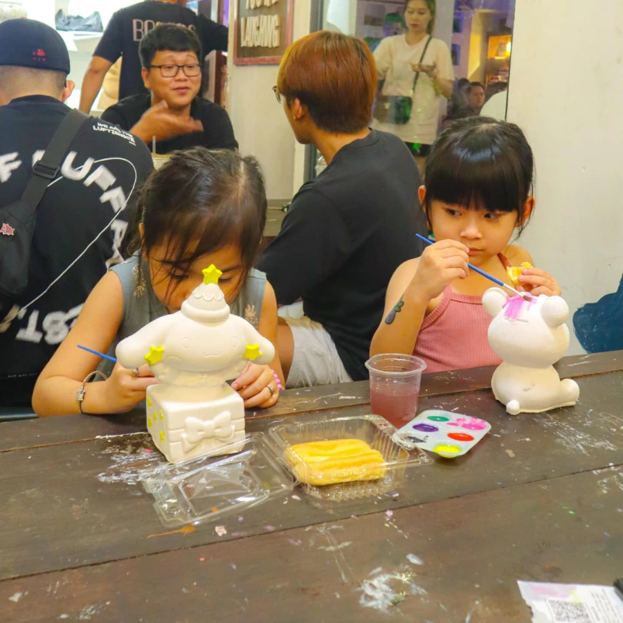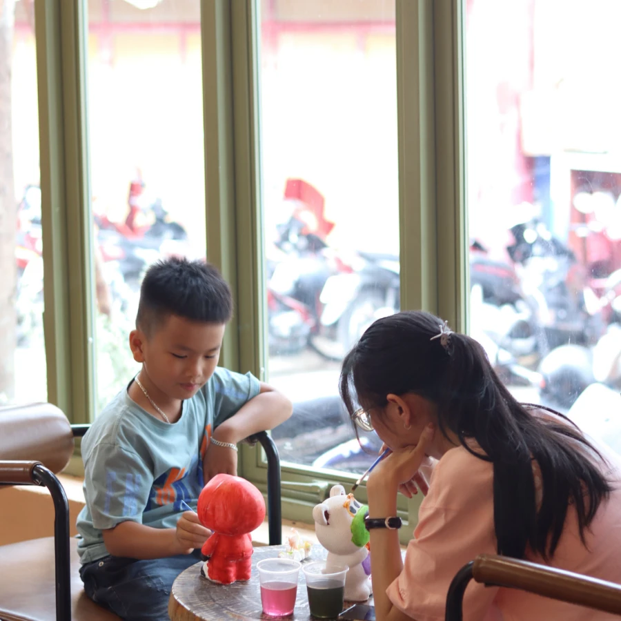 Tại Cafe Bamos, hoạt động tô tượng có giá từ 50k, bao gồm màu cọ sẵn để bạn thỏa sức sáng tạo. Ngoài ra, chúng tôi còn có các sản phẩm như lego, tranh đính đá, và nhiều loại đồ handmade khác, với mức giá hợp lý từ 30k. Đây không chỉ là cơ hội để bạn thể hiện tài năng nghệ thuật mà còn là dịp để tận hưởng thời gian vui vẻ cùng gia đình và bạn bè.